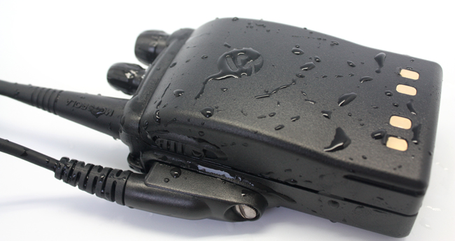 對講機手持終端產品的IP等級反映了對講機及配件的防水和防塵的能力,特別是對于室外工作中,免不了處于高濕或多塵沙的惡劣環境中,對講機及配件的密封和防水能力對于保證對講機的安全運轉和壽命就至關重要。為此,國際上制訂IEC529標準。為了與此相適應,日本工業標準中將電子產品的防水保護分為10個等級,分別以IPX1、IPX2……表示。
